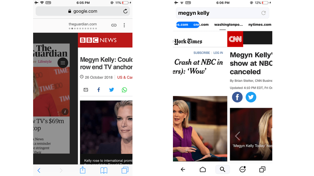 When searching for current news, you often encounter web pages optimized by Google AMP technology, such as the one shown below. It is very convenient to swipe left and right to view reports from different media. Cake Browser directly displays the full page, and the browsing experience is further optimized.