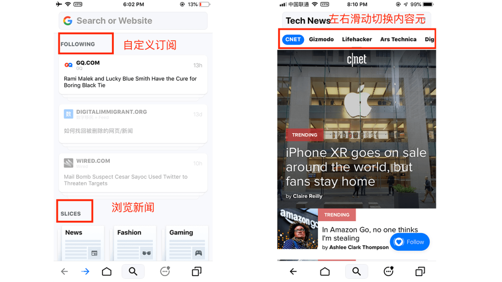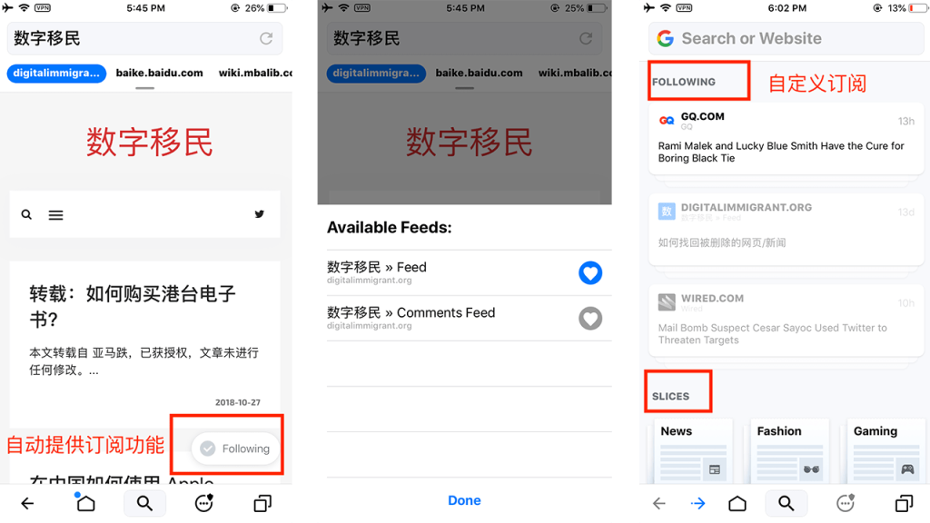 After visiting various websites/blogs, Cake Browser will automatically prompt whether to subscribe. After clicking to subscribe, if the website has been updated, you can see it on the browser homepage. After clicking, you can directly read the latest article and swipe right to view the previous updates. It is very suitable for subscribing to blog sites with low update frequency. For news sites that update dozens of articles every day, the efficiency of sliding will be reduced.