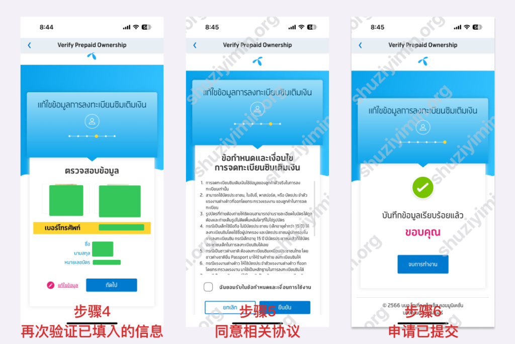 If you have used your passport for real-name authentication when purchasing the card, please ignore this step. If you purchased a DTAC prepaid card in China, there is no real-name authentication by default, and you need to submit your personal passport information + selfie for real-name authentication. Click Verify Prepaid Ownership in the DTAC app to authenticate your real-name. This step is only available in Thai by default, but it is not troublesome. After taking a screenshot of each page, use Google Translate or Apple’s built-in translation app to translate the entire image. See the figure below for details