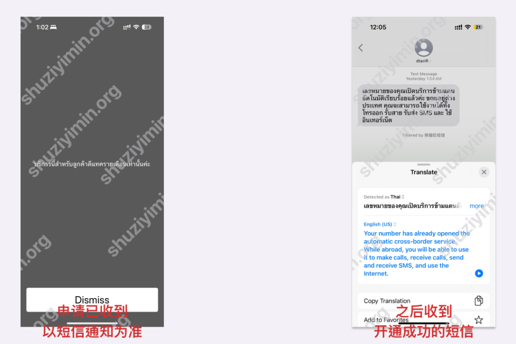 Just like the first step, you can activate international roaming by sending a USSD number (dial *118# with a prepaid card). If you need to use this number to receive text messages in China, you can activate international roaming. If you leave Thailand, you cannot activate international roaming.