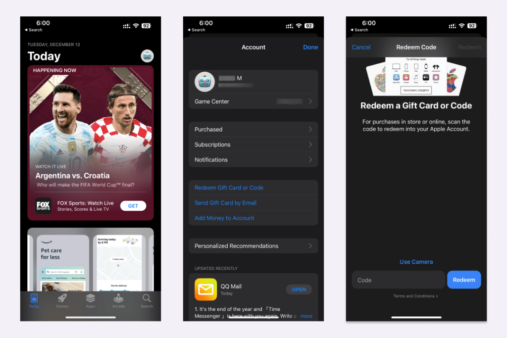 Open the App Store, click on your profile picture, click Redeem, enter the redemption code, and the redemption will be successful.