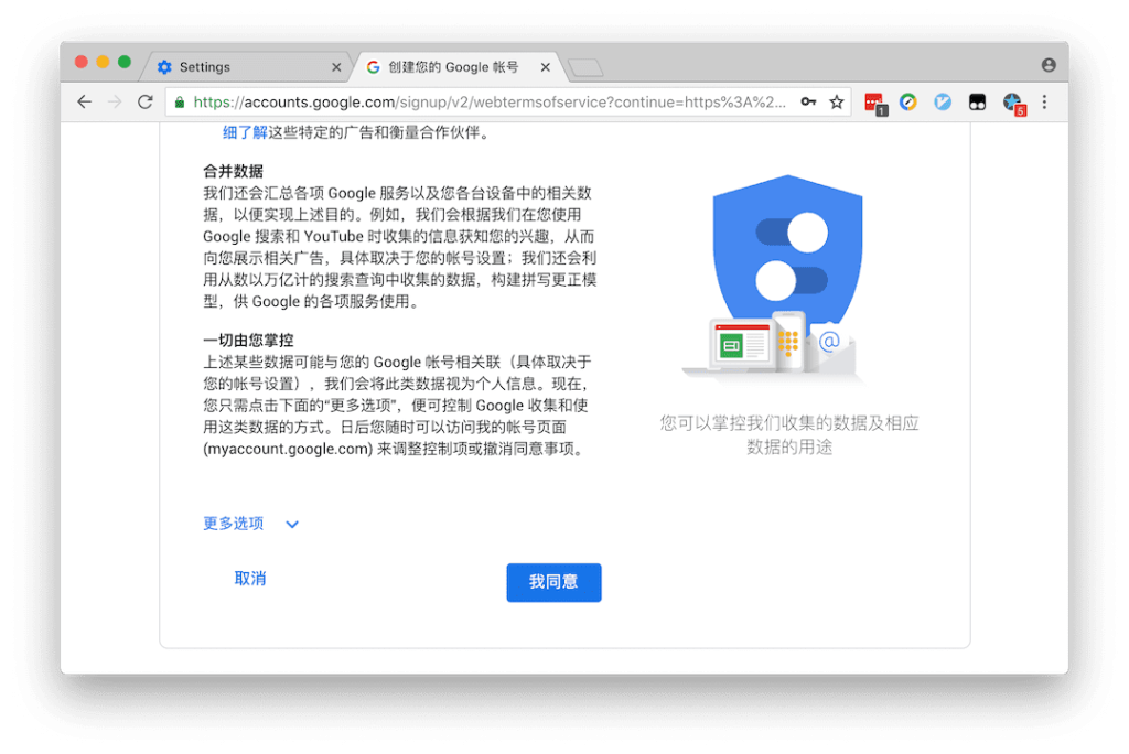 2.4. Agree to the privacy agreement, and then jump directly to the Chrome sync window. If there are history records, labels, etc., you will be prompted whether to merge the records into the new account. Done!