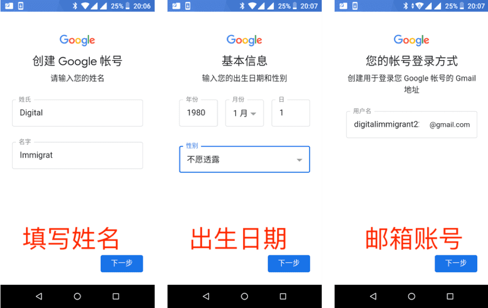 3.2 Enter the operation process, which is the same as the first method, and fill in basic information such as name, date of birth, gender, email account, etc.